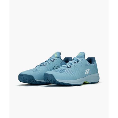 オールコート用として幅広いシーンで活躍するテニスシューズ。3E設計で足幅がゆったりとしており、窮屈感を軽減します。パワークッション搭載で着地時の衝撃を吸収し、快適な履き心地を実現しているのが特徴です。
