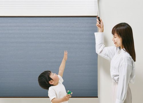 多彩な組み合わせでインテリアのアクセントにも使えるハニカムシェード。25mmと45mmのセルサイズから、設置する窓に合わせて選べるのが特徴です。ハニカム断面がD型セルになっているため重さがかかっても形状変化が少なく、美しいプリーツラインを保てます。