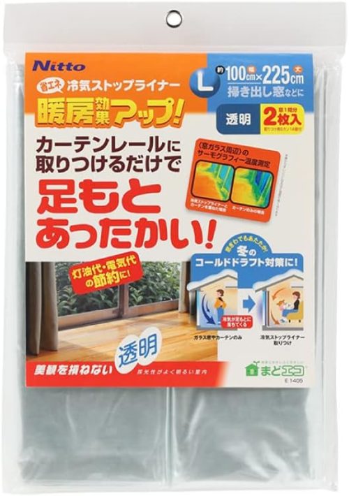 カーテンレールに取り付けるだけで冷気・暖気の出入りを防げるカーテンライナー。冷暖房両方の効率を向上させられるため、1年を通して省エネ効果を期待できるのが特徴です。窓ガラスに生じる結露も抑えられるので、カーテンのカビ予防にも使えます。