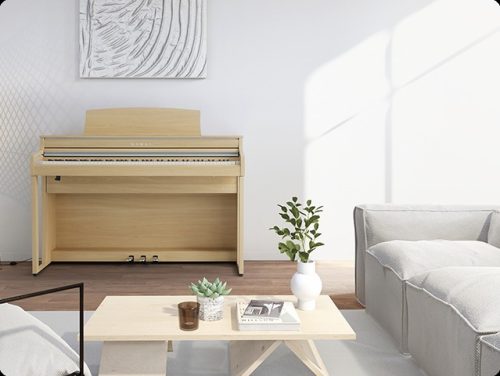 木製鍵盤を搭載し、アコースティックピアノを忠実に再現したカワイの電子ピアノ「CA」シリーズのエントリーモデル。独自の「グランド・フィール・スタンダード・アクション」鍵盤は、グランドピアノとシーソー式構造により低音部は重く高音部は軽いタッチを実現しています。