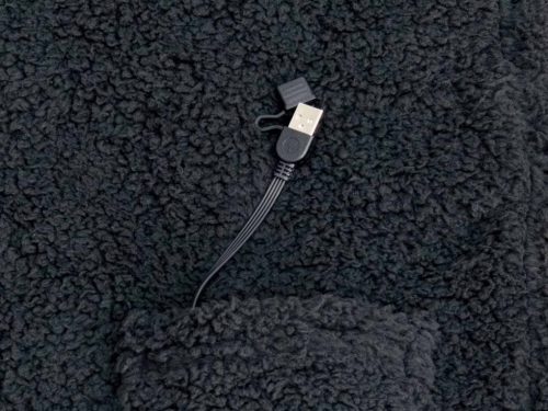 薄型ヒーターを内蔵した着るタイプの電気毛布。モバイルバッテリーに対応したUSB式で、電源に接続すると約10秒で素早くあたためると謳われています。コードを気にせず自由に動けるのが魅力です。
