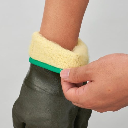 手袋内部にファンシーヤーンを使用した防寒手袋です。内部の湿気を外に逃がす発泡天然ゴムを手首まで全面に施した、柔軟性とフィット感に優れたフルコート仕様。手のひら部分には特殊な滑り止め層を設け、しっかりとしたグリップ力を確保しています。