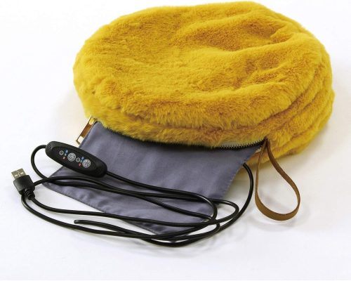 ふわふわとした質感のカバーが魅力の充電式湯たんぽです。約8~15分の蓄熱で、布団のなかでは約8~12時間あたたかさが持続します。