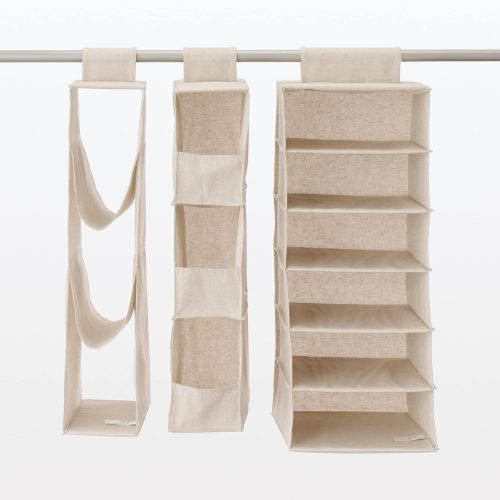 6段設計のクローゼット収納におすすめのアイテム。ワードローブやラックに吊るして、セーターや帽子、マフラーなどを整理できます。ポリエステル100%の布地で作られており、使わないときはコンパクトに折りたためるのが魅力です。