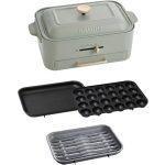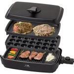 さまざまな調理ができるプレートを備えたアイテムです。本体に焼き肉・たこ焼きと2タイプのプレートを同梱。プレートを取り外すと五徳が付いており、鍋の保温ができるのもメリットです。