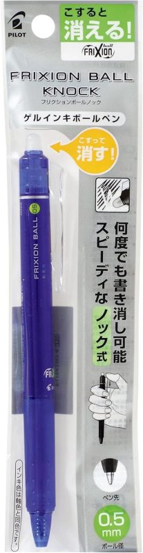 摩擦熱で書いた文字を消せるノック式ボールペン。フリクションインキを用いており、本体後部の専用ラバーでこすると筆跡が透明になります。消しカスが出ず、手帳や資料への書き込みをスムーズに行えるのが魅力です。