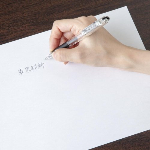 ボール径0.5mmのノック式で、日常のメモから書類作成まで幅広く活躍。はっきりと読みやすい筆跡を残せるインクも特徴です。