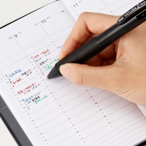 3色構成が基本ですが、4色以上のインクやシャープペンシル機能を備えた多機能タイプもあります。また、スリムな軸を選ぶと手帳のペンホルダーに収納しやすく、持ち運びにも便利。用途に合わせてインクの種類や芯の太さを選んでみてください。