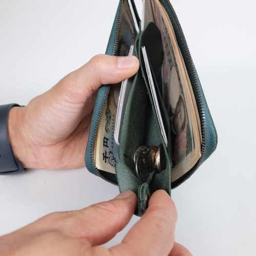 「Culaccino L-ZIP2」の特徴は、1万円札のサイズにわずか1.2cmをプラスしただけの、小さく設計されたサイズ感にあります。コンパクトさを実現しながら、お札を折らずにそのまま収納できるのがメリット。お札を大切に扱いたいけれど、財布自体は小さくしたいという方におすすめです。