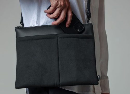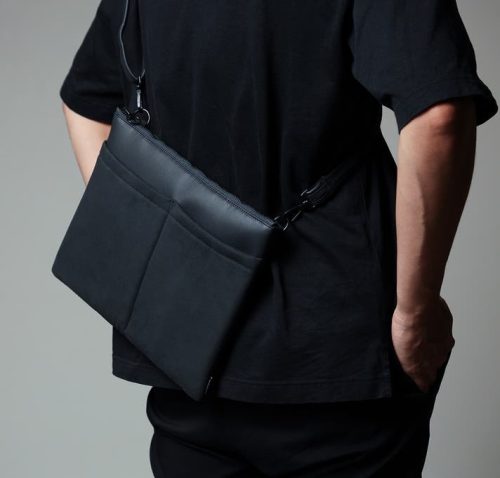 自動車の内装材をアップサイクルしたサコッシュ「doacara」。厳しい品質基準をクリアした合成皮革は、傷や汚れに強く、しっとりとなめらかな手触りが魅力です。11インチのタブレットや保温・保冷ポケットを備えつつ、厚み1.5cmのスリムさを実現。国内職人の技術が光る、タフでスマートなバッグです。