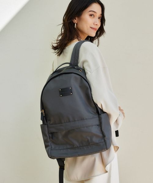 オリジナルロゴプレートがアクセントの、きれいめデザインのリュックです。A4サイズが入る大容量で通勤や通学にぴったり。サイドジップを備えており、中身をサッと取り出せます。