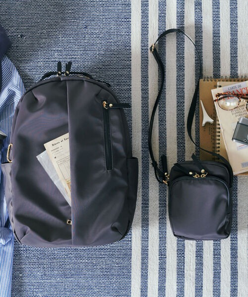 やわらかな質感が魅力の、レディースリュック。160デニールのリサイクルナイロンを使用しています。フリースライニング付きジッパーポケットは、スマホやサングラスの収納に便利です。