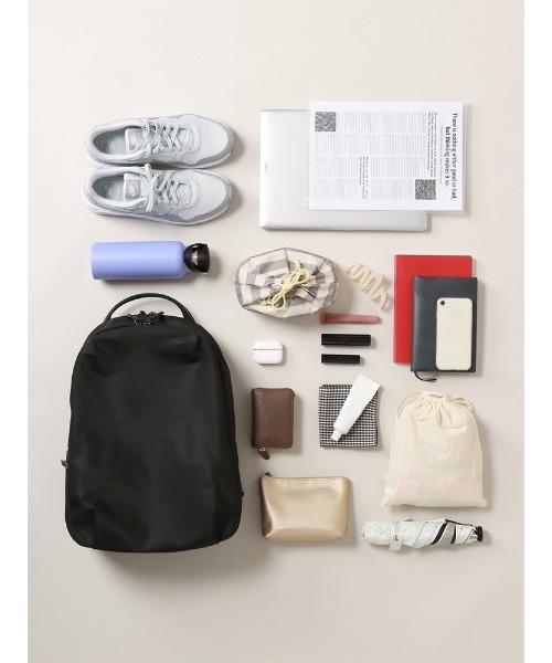 軽さと使いやすさを追求したリュック。ファスナーの引手はブラックで統一し、メンズライクな雰囲気に仕上げています。A4サイズが収まるため、通勤や通学などのデイリーユースにおすすめです。