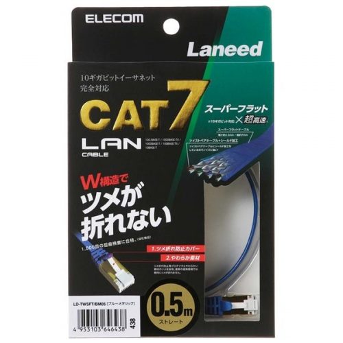 180°曲げても折れない新素材ツメを採用したLANケーブルです。CAT7対応で伝送帯域600MHzを実現。CAT5eの6.0倍の帯域をクリアします。