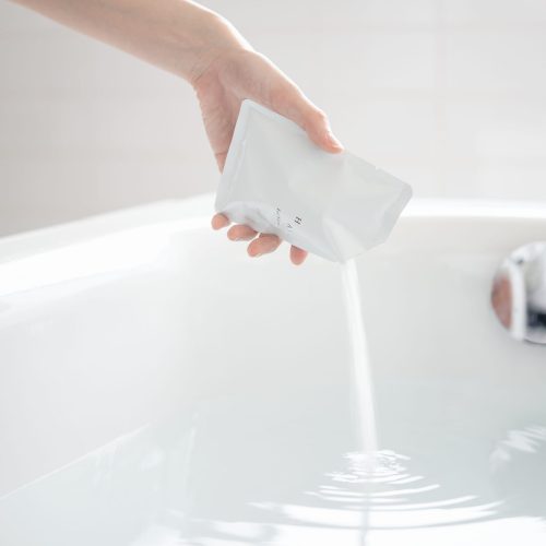 お湯に入れるとほのかに白く色づき、やわらかな湯ざわりを楽しめるのが特徴。植物由来のオイル成分が溶け込んでおり、入浴後の肌をしっとりとなめらかな状態へ整えるスキンケア効果も期待できます。
