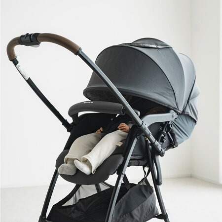 3.3kgの軽量ボディで、赤ちゃんを抱きながらでもラクに持ち運び可能。ワンタッチ開閉できるので、赤ちゃんを頻繁に乗せ降ろしする場面でもスムーズに扱えます。収納カゴは前からも出し入れできる仕様で、使い勝手が良好です。