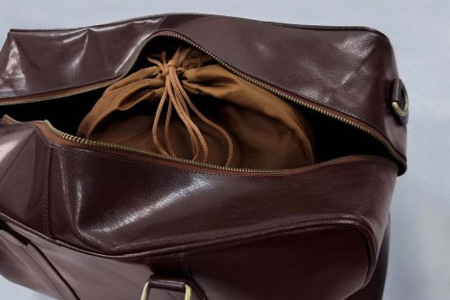 さらに、荷物を入れたまま巾着ごと取り出せるのもポイント。別のバッグへの荷物移動が短時間で完了します。