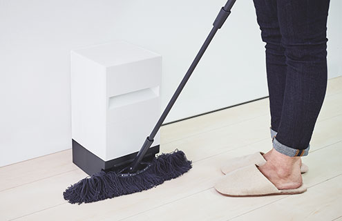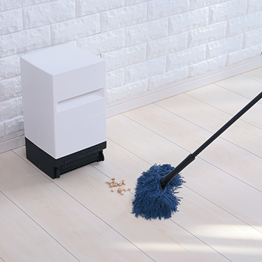 モップ掃除をサポートするステーションクリーナー。モップで集めたゴミやホコリを、かがまずにサッと吸引できる新しいスタイルが特徴です。掃除機を出す手間なく、気軽に床をきれいに保てるのが魅力です。