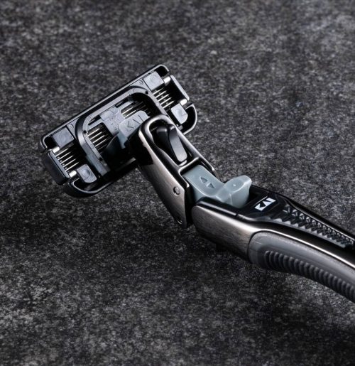 特許技術の「シームレスフィッティングシステム」を搭載したT字カミソリです。独立サスペンションと3D首振り機能の組み合わせにより、広い可動域を実現しているのが特徴。レバーを引くとヘッドが30°可動する仕様で、カミソリを持ち替えることなく、逆剃りしやすいのも魅力です。