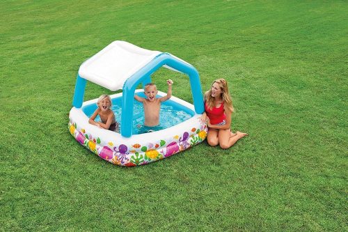 取り外し可能な屋根が付いたビニールプール。日差しの強い日でも直射日光を避けて水遊びできます。屋根付きのビニールプールが欲しい方におすすめです。