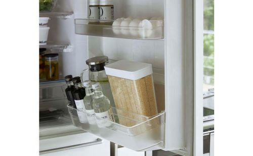 計量不要で使えるスリム設計の冷蔵庫用米びつです。内部が1合ごとに12分割されており、必要な量だけを釜に直接注げます。ホワイトとブラックの2色展開で、冷蔵庫内で主張しすぎないシンプルなデザインが魅力です。