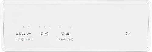 ひとセンサーが人の動きを検知して自動で運転を開始・停止するため、無駄な電力消費を抑えられます。温風は強・弱の2段階で切り替え可能です。