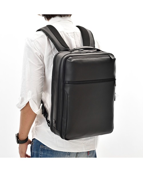 メインコンパートメントがB4サイズに対応した、ビジネスシーンで重宝するレザーリュック。抗ウイルス・抗菌加工が施された合成皮革を使用しています。独立したPCコンパートメントを備えているため、デジタルデバイスを仕分けて収納可能です。