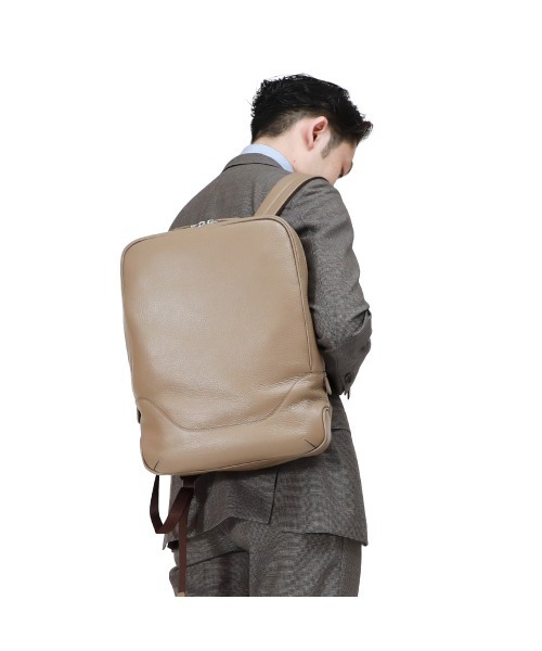 鞣しによって透明感を出した、北米産の牛ステアを使用しているレザーリュックです。すっきりとした印象のスクエアタイプで、スーツスタイルと好相性。通勤時などに活躍するレザーリュックを探している方におすすめです。