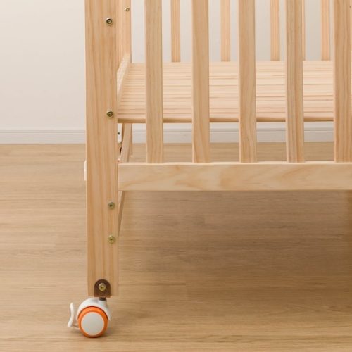 4箇所すべてにストッパー付きキャスターを装備しており、移動も固定も簡単。カラーはナチュラル・ホワイト・グレーから選べます。丈夫な作りのミニベビーベッドを求める方におすすめです。