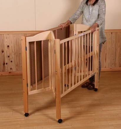 扉はスライド式を採用し、おむつ替えや乗せ降ろしがしやすい設計。床板は2段階に高さ調節が可能で、ベビーサークルとしても使用できます。収納性と機能性を両立させたい方におすすめのベビーベッドです。