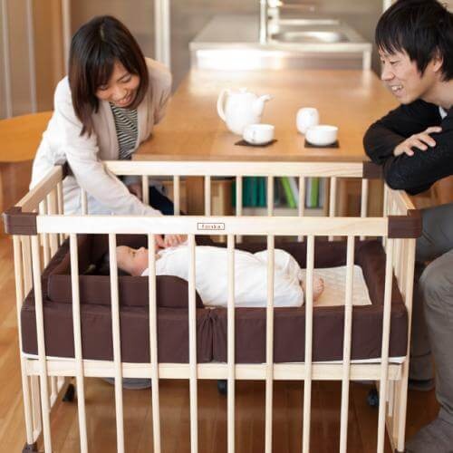 床からの高さがあることで、ホコリやハウスダストから赤ちゃんを守れるのもポイント。また、ペットや上の子供がいる家庭でも、赤ちゃんが安全に過ごせる空間を確保しやすくなります。リビングや洋室での使用にも適したタイプです。
