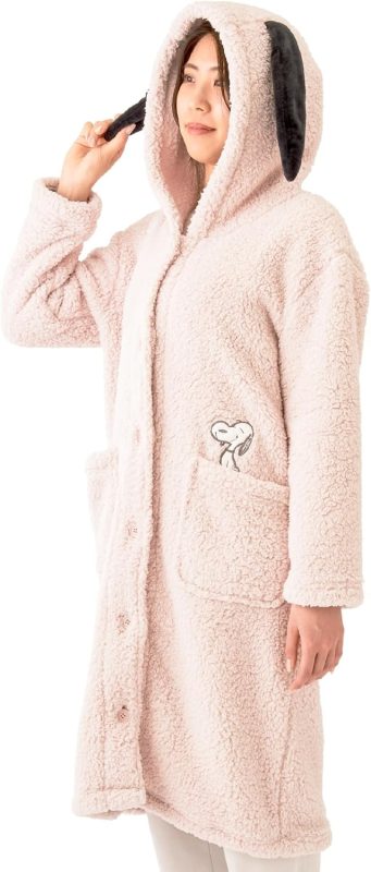 ふわふわな肌触りが魅力のスヌーピーデザインの着る毛布。シープボア素材を使用しており、あたたかさと心地よい肌触りを実現します。フード部分には耳が付いており、スヌーピーの刺繍がポケット部分にあしらわれているのが特徴です。