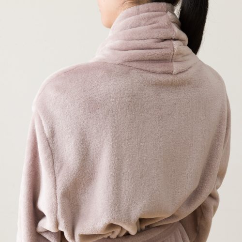 毛足が長いマイヤー素材を使用した着る毛布。肉厚な生地で、表裏ともに起毛処理を施しており、やわらかな肌触りと確かなあたたかさを実現しています。ワンピースとしてもガウンとしても着用できる2WAY仕様が特徴です。