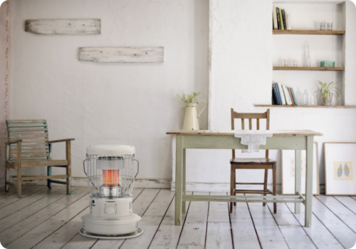 1930年代にイギリスで生まれて以来、ほとんどデザインが変わらないおしゃれな石油ストーブです。レトロでおしゃれなデザインは、和室・洋室・北欧風などさまざまなインテリアのスタイルにマッチします。