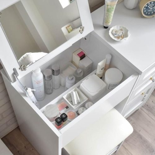 収納力が高く、化粧品やアクセサリーをすっきりと整理できるのもメリット。なかには、天板を閉じるとデスクとして使える多機能なモノや、使い勝手がよいLEDライト付きのモデルもあります。