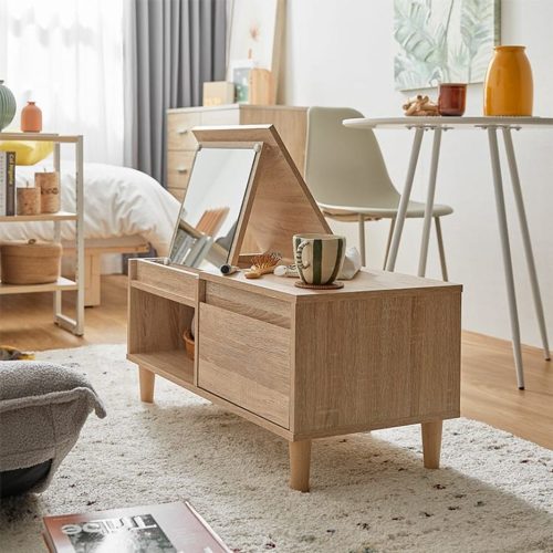 ロータイプのドレッサーは高さが低めなので圧迫感が少なく、省スペースで設置できるのがポイントです。床に座ってリラックスしながらメイクをしたい方におすすめ。なかには、ローテーブルとして兼用できるデザインもあります。