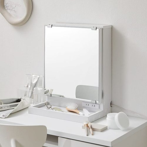 コンセント付きのモデルは、スマートフォンなどの充電をしながら身支度ができて便利です。なかには、化粧箱のような形のかわいいタイプもあります。