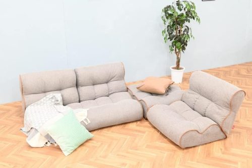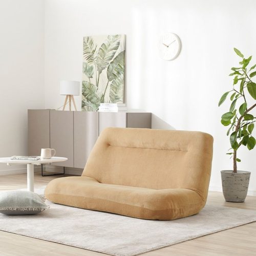 幅118×奥行74~128×高さ70cmで、座面高は22cm。ポリエステル100%の表地とウレタンフォームの中材を組みあわせ、やわらかな質感に仕上げています。カラーはグレージュ・パウダーピンク・オフホワイトなどを展開。2人でゆったりしたい方におすすめです。