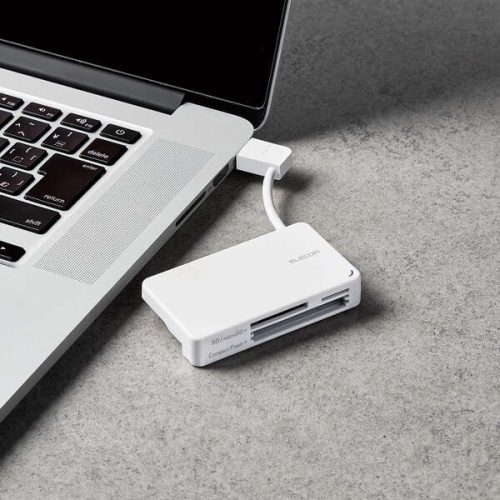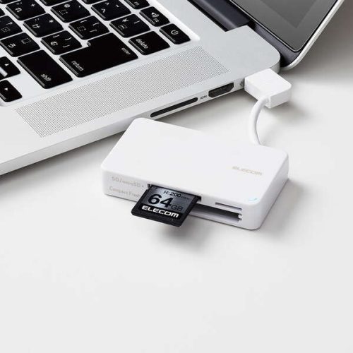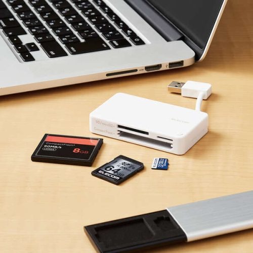 多様なメディアに1台で対応するマルチカードリーダー。microSDやSDカード、コンパクトフラッシュなどに対応します。スマホやデジカメで撮ったデータの管理、移行に便利なアイテムです。