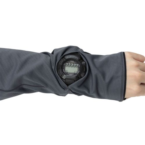 両腕にウォッチウィンドウを搭載し、袖をめくることなく腕時計の表示確認が可能。ランニング中の利便性を追求した実用的な設計です。