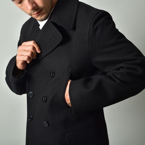 ピーコートは、もともと英国海軍が艦上用の軍服として着用していたアウター。フランスの漁師たちも愛用していたといわれています。さまざまな方向から風が吹きすさぶ状況下でも対応できるよう、左右どちらを前にしてもボタンが閉められる「ダブルブレスト」仕様になっているのが特徴のひとつです。
