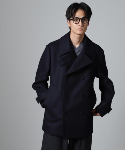 上質なウールツイルで仕立てたピーコートです。総裏仕様のため、あたたかく着用できます。また、着丈をミドルレングスで仕上げているのもポイント。スーツスタイルにもあわせやすい、おすすめのアイテムです。