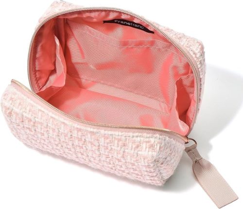 ツイード素材で、高級感のある化粧ポーチ。洗練された印象や、エレガントな雰囲気を演出します。また、間口が大きく開くので、化粧直しにも使いやすいのがメリット。内側にはポケットが付いており、分けて収納もできます。