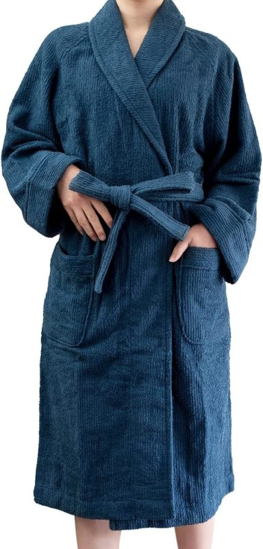 ゆとりのあるシルエットに仕上げ、ウエストはベルトでフィット感を調節可能。お風呂上がりにサッと羽織れるため、湯冷め対策に役立ちます。両サイドにポケットがあり、小物を入れられるのも便利なポイント。シンプルで落ち着いたデザインの製品を求める方におすすめです。