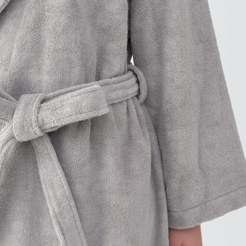 毛羽落ちしにくく吸水性に優れた綿100%タオル生地のバスローブです。バスタイム後の水滴を素早く吸収し、速乾性にも優れています。軽量でふんわりとした肌触りで、着心地も快適です。