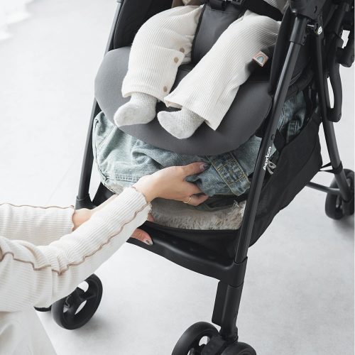 身軽にお出かけできるコンパクトベビーカーです。たっぷり入る収納カゴがあり、荷物を入れたままでも本体を折りたたみしやすいのがおすすめポイント。電車やバスでの移動時や、階段の上り下りの際に手早く対応可能です。