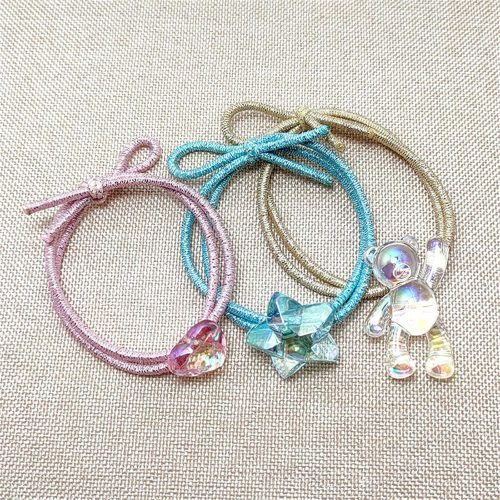 ゴムの色が華やかなので単体でも映えますが、好みのビーズやチャームなどと組み合わせてオリジナルのヘアアクセサリーを作るのもおすすめ。ラメ入りのヘアゴムが欲しい方はチェックしてみてください。