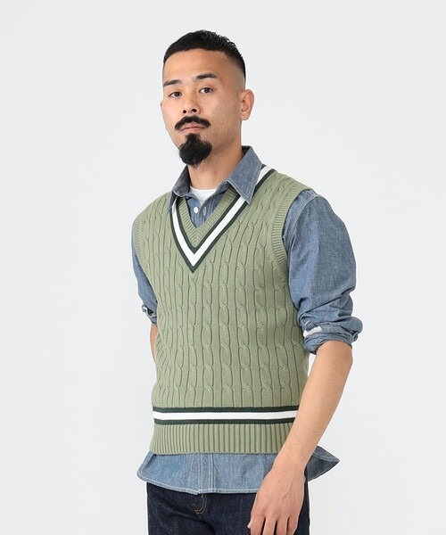 英国老舗ニットウエアブランドのニットベストです。100年以上変わらない伝統的な製品作りが受け継がれており、品格のある仕上がりが魅力。BEAMS PLUS別注の凹凸がしっかり浮き立つケーブル編みを採用しています。