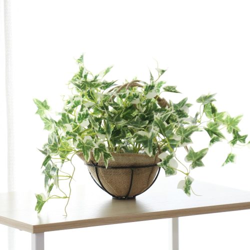 つる性のアイビーをモチーフにした人工観葉植物。長さは約80cmで、壁にかけて手軽に緑を楽しめます。プラスチック製ながら本物のようなリアルな質感が魅力です。グリーンと相性がよい籐のカゴが付属します。