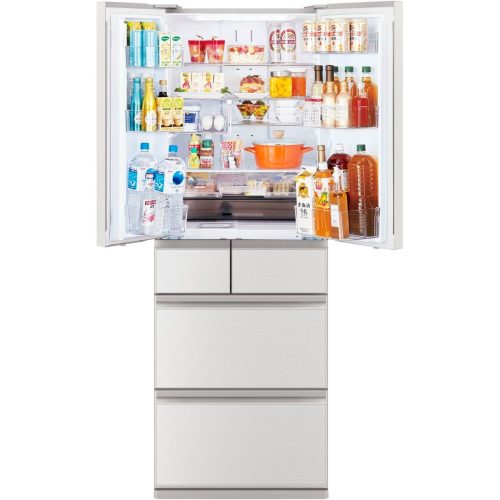 鮮度維持機能が充実した551Lの6ドア冷蔵庫。氷結晶チルドモードにより、凍らせずに肉や魚の鮮度を長く保てるのが特徴です。約10日間野菜のみずみずしさをキープできる「もっと潤う摘みたて野菜室」を搭載しており、まとめ買いする方にもおすすめです。
